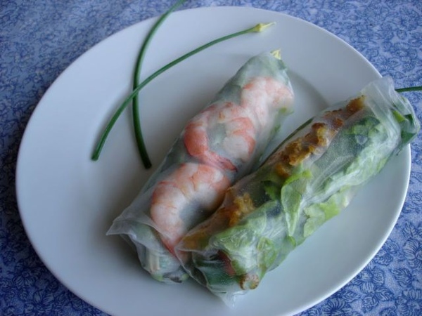 這就是這陣子常做的越南生春捲,非常簡單。重要的是,要有一些不同的香菜:薄荷、芫荽﹝台灣一般的香菜﹞、九層塔、韭菜、蔥,和一些我不知道中文名稱的越南香菜。可以做素食也可以包肉、海鮮。大家一般會在越南餐廳吃到的是包水煮的蝦仁和越南米線。但我覺得水煮的蝦仁沒什味道只是看起來好看,加上和其他香菜一起吃,整個吃不太出來有沒有包蝦仁。