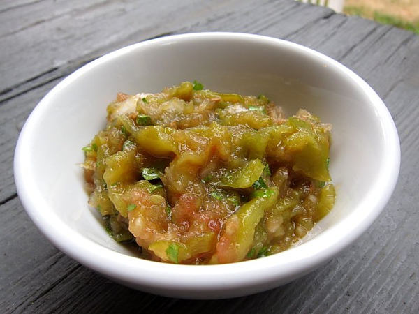 好低,加入:香菜、白洋蔥、一顆番茄,一起打成泥,用鹽、檸檬汁和一點點糖調味